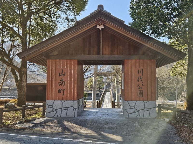 吊り橋の入り口の建物に「川代公園」と書いてあります。公園なんですね(^^)。調べると吊り橋は広田の吊り橋でした。