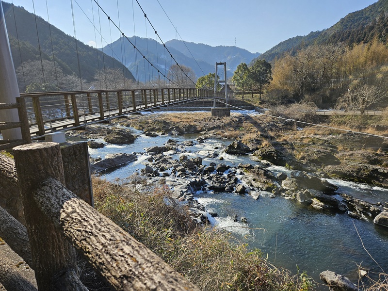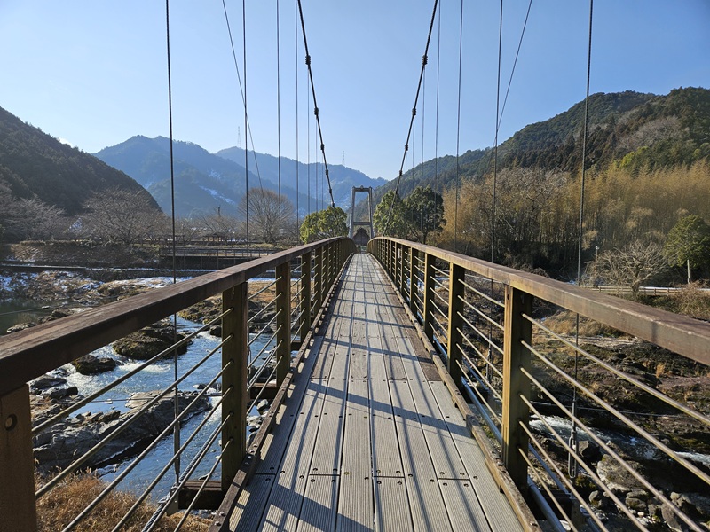 天気がいいので景色も良くドライブが気持ちいいです!山南町に入ってから吊り橋が見えてきました。