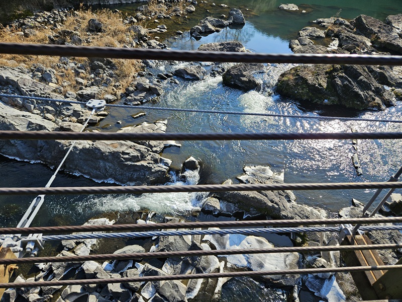 下をのぞくと篠山川の急流が見えます!なかなかのアングルで見れます!