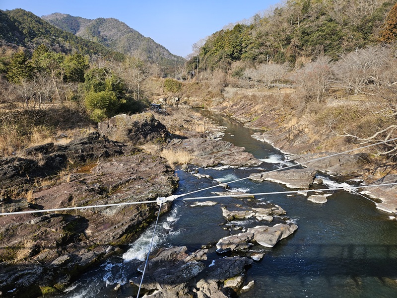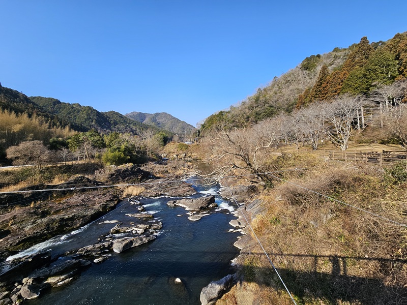 吊り橋からの景色を見渡すと、山と川と吊り橋の三位一体の絶景です!しばらく見入ってしまいました☆桜が咲いたら圧巻でしょうね(^^)