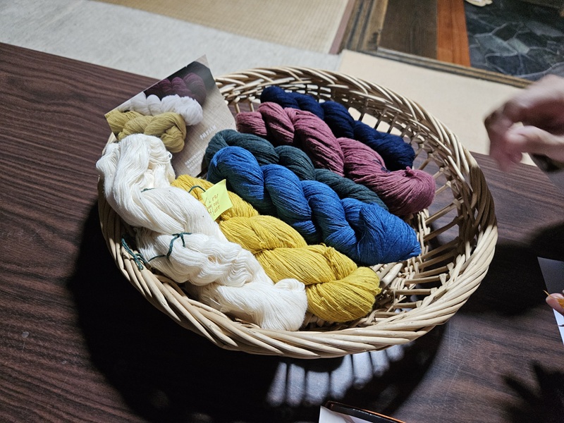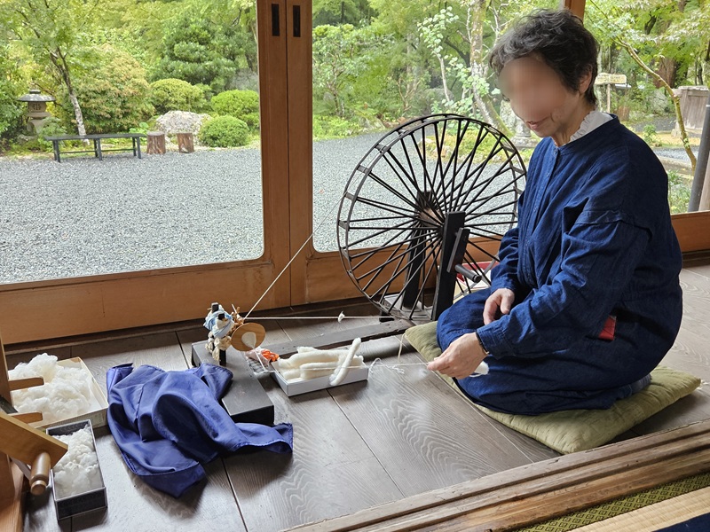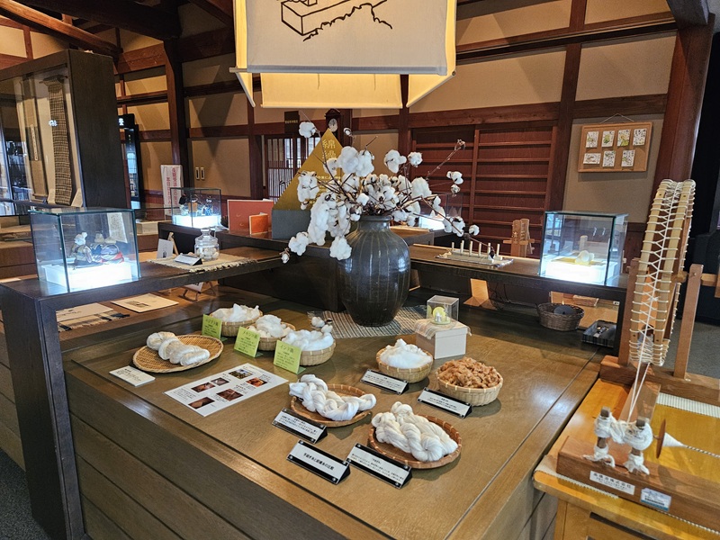 中に入ると丹波布の糸や丹波布の作品がたくさん!おばあちゃんが車糸で糸を紡ぐ実演をしてくれました。ちょこんと座って作業している姿にほっこりしました(^^)。