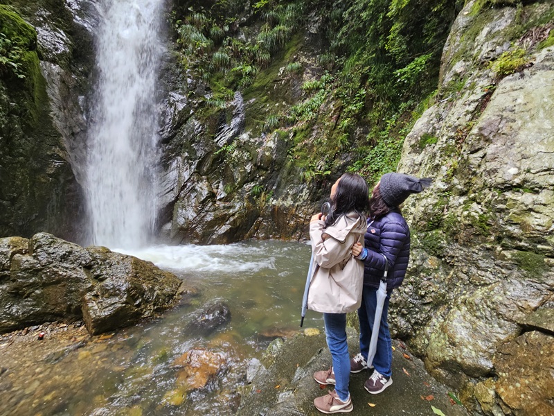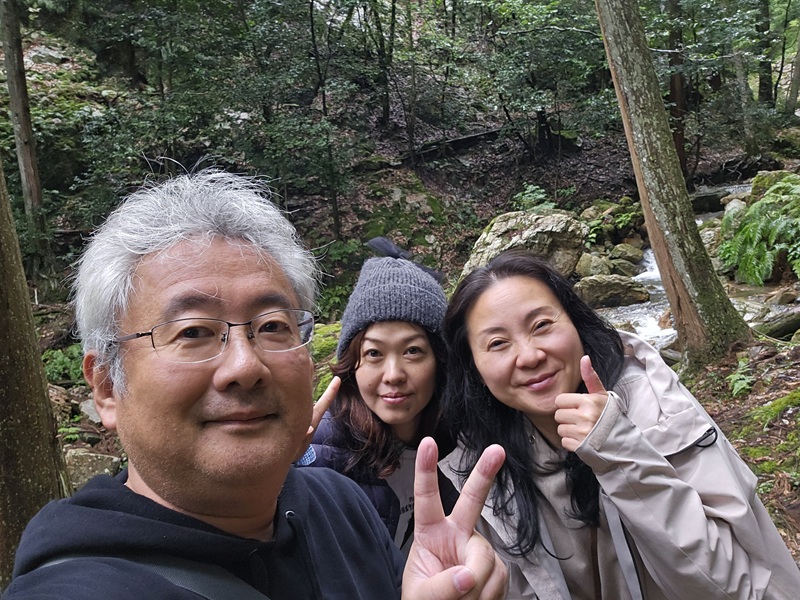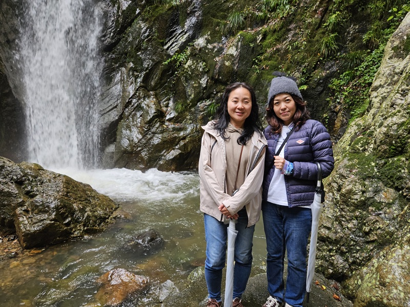 普段は見られない滝を眺めて、滝のマイナスイオンを浴びて身体を清めます。ここでも記念撮影(^^)