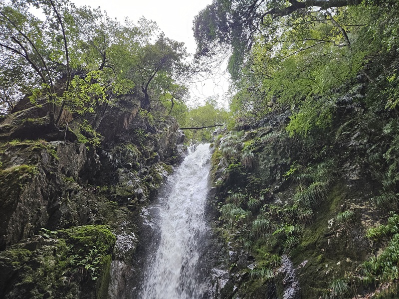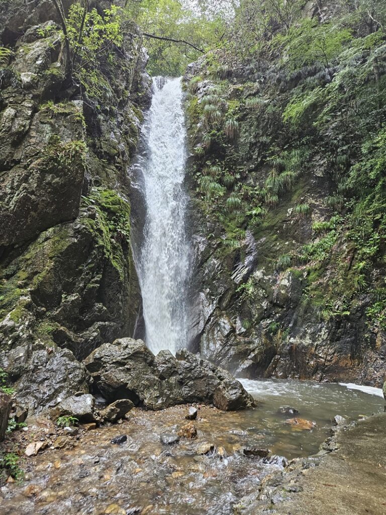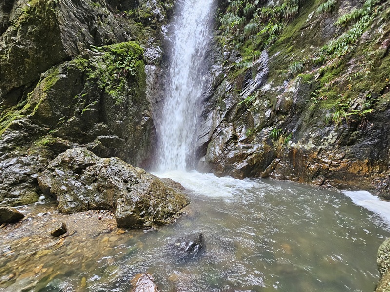 奥に進むと見えてきました!「独鈷の滝」です!この日は雨も降っていたことから水かさが増して迫力ある滝でした!