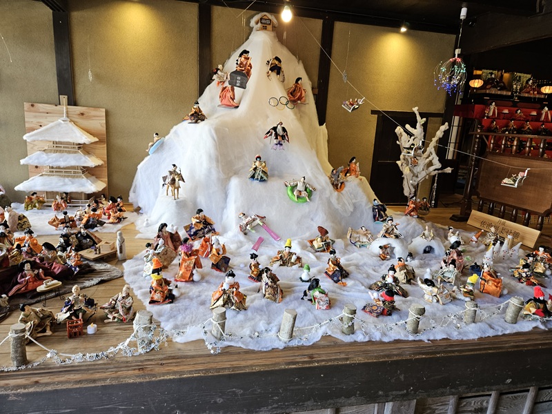 中に入ると沢山のお雛様がいろんな演出をしています!そうそう、今年は冬季オリンピックでしたね!スノボーしているお雛様もある(笑)