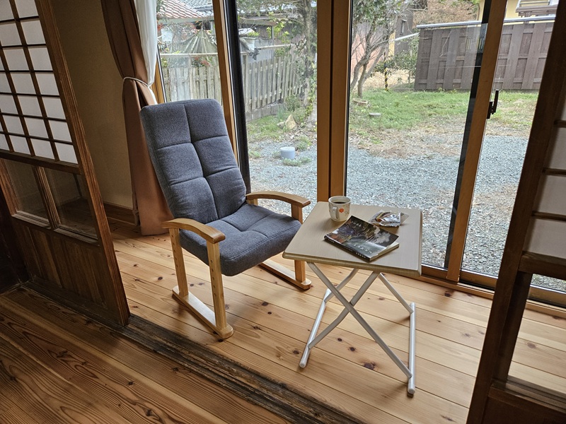 そして、念願の縁側で珈琲を飲みながら本を読むためのリクライニングチェアも届きました!テーブルも買ってきました!これが夢だったんですよね~(^^)