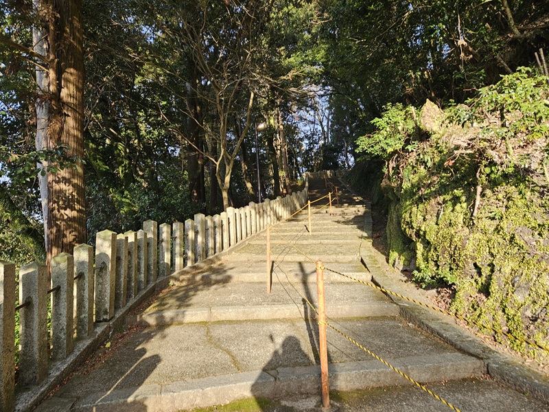 途中から天気も晴れてきました!車を駐車場に止めて柏原八幡宮に向かいます。鳥居から階段で上がります。この階段が結構きつい高さです~。