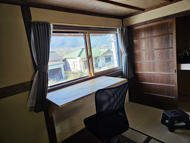 そして、窓ふき。西側は景色がいいので折り畳みのデスクを壁に設置しています。お気に入りのデスクです(^^)