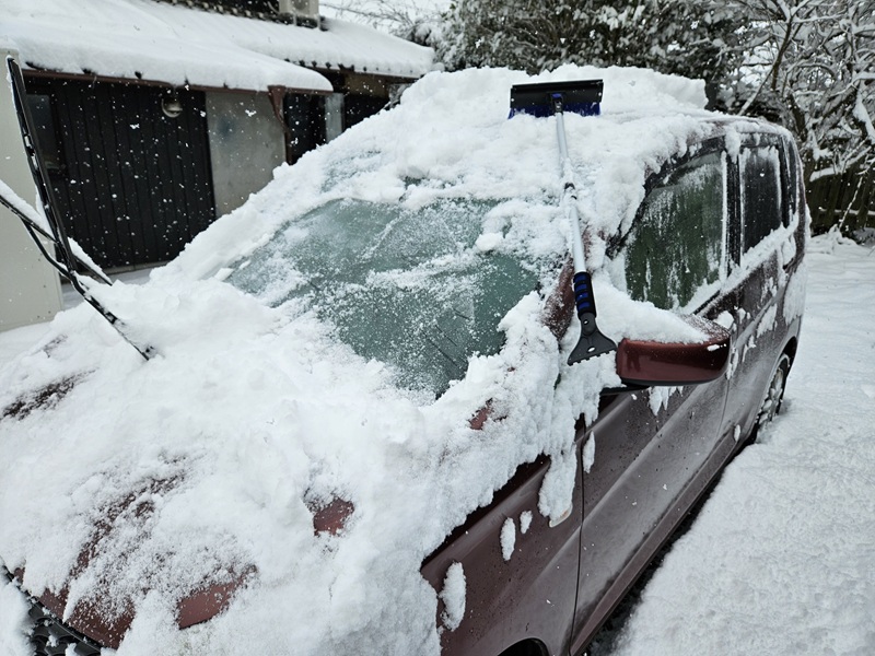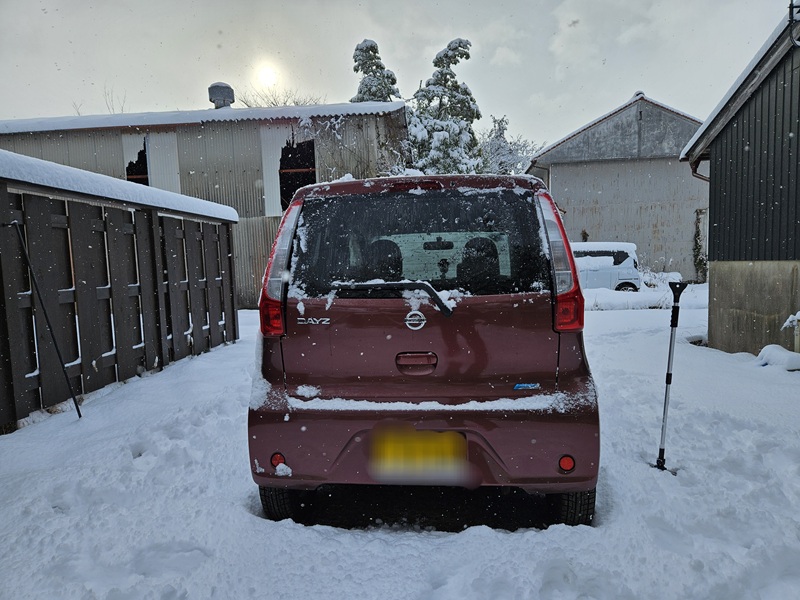 まずは、車の雪かき。前回の雪の時に教訓から買っておいてよかった!スノーブラシ。