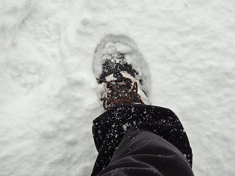 靴はスッポリ雪の中に入ってしまって10cmは積もっている感じです。